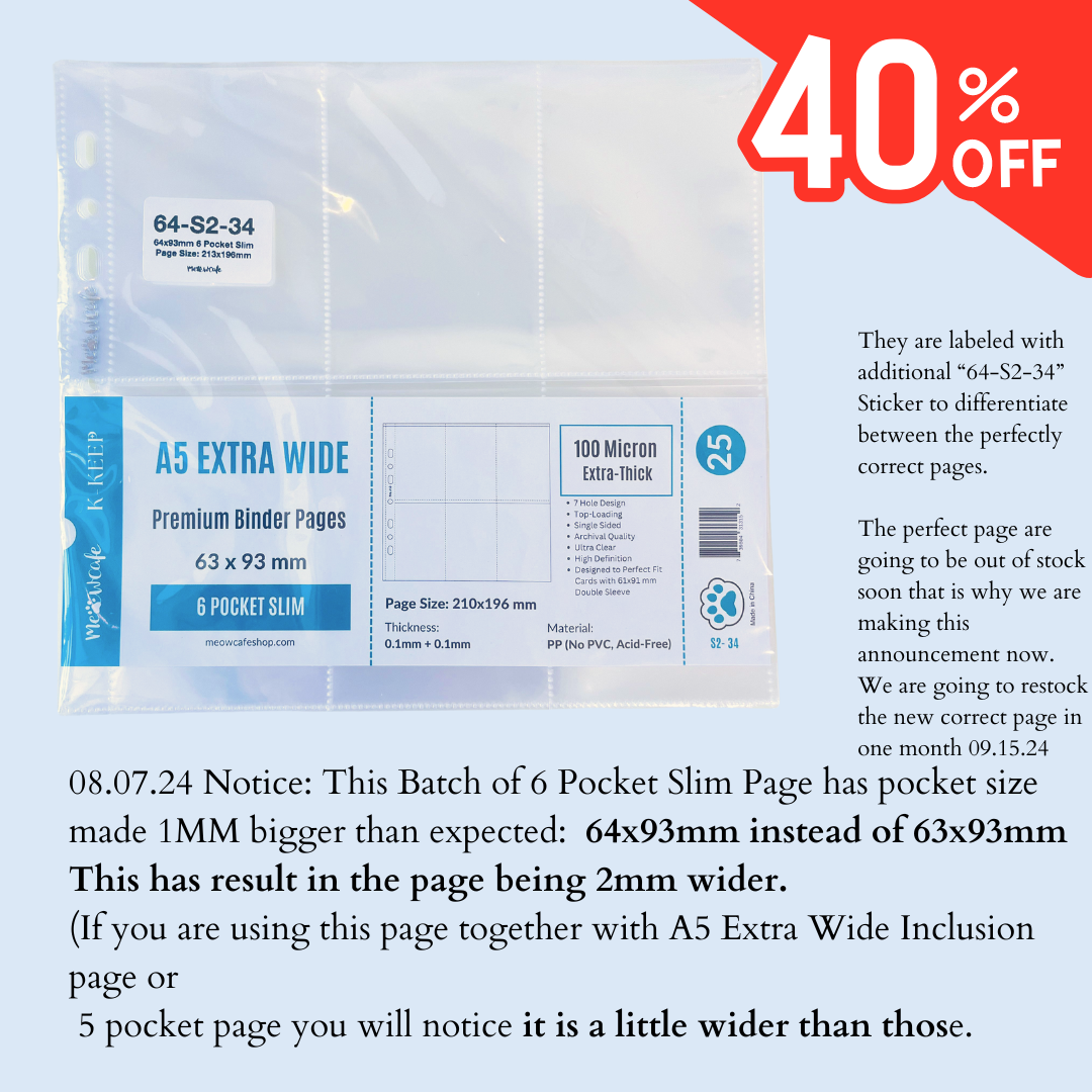 08/07/2024 Notice: This Batch of 6 Pocket Slim Page has pocket size made 1MM bigger than expected: 64x93mm instead of 63x93mm