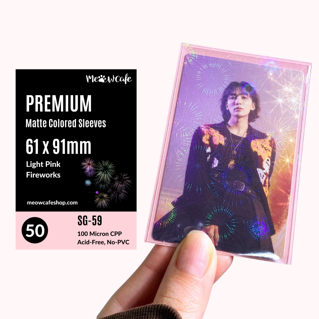 ![[50% OFF Final Sale No Restock][61x91mm] Premium Colored Hologram Matte Sleeves - Hologram Fireworks + Light Pink (SG-59)](http://meowcafeshop.com/cdn/shop/files/20_056d5257-3233-494d-9b1c-92af2eaf5afd_medium.png?v=1700695093)