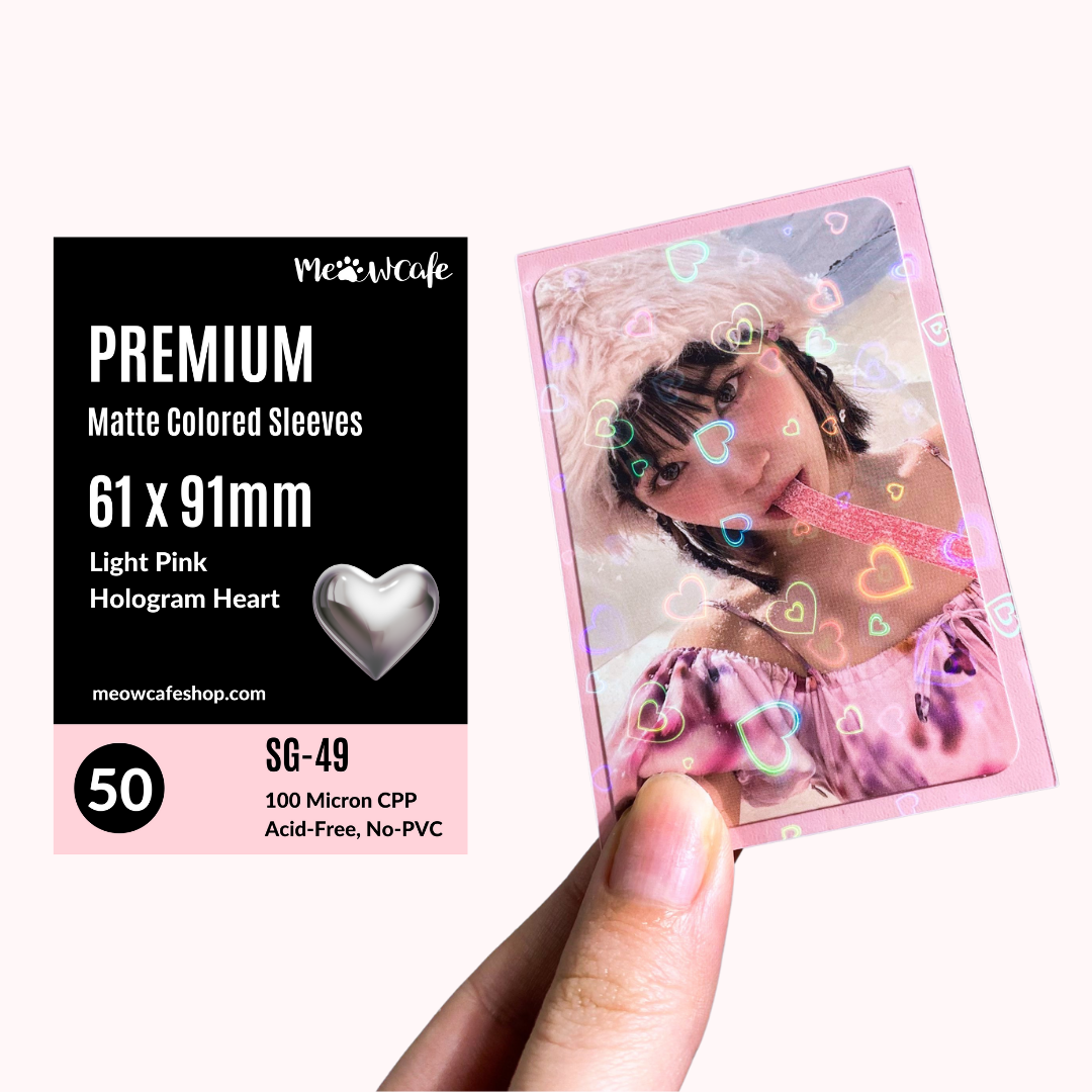 ![[61x91mm] Premium Colored Hologram Matte Sleeves - Hologram Heart + Light Pink (SG-49)](http://meowcafeshop.com/cdn/shop/files/27_edf6a8a2-9b4c-4b83-98e6-5831befbc7a3_medium.png?v=1700695107)