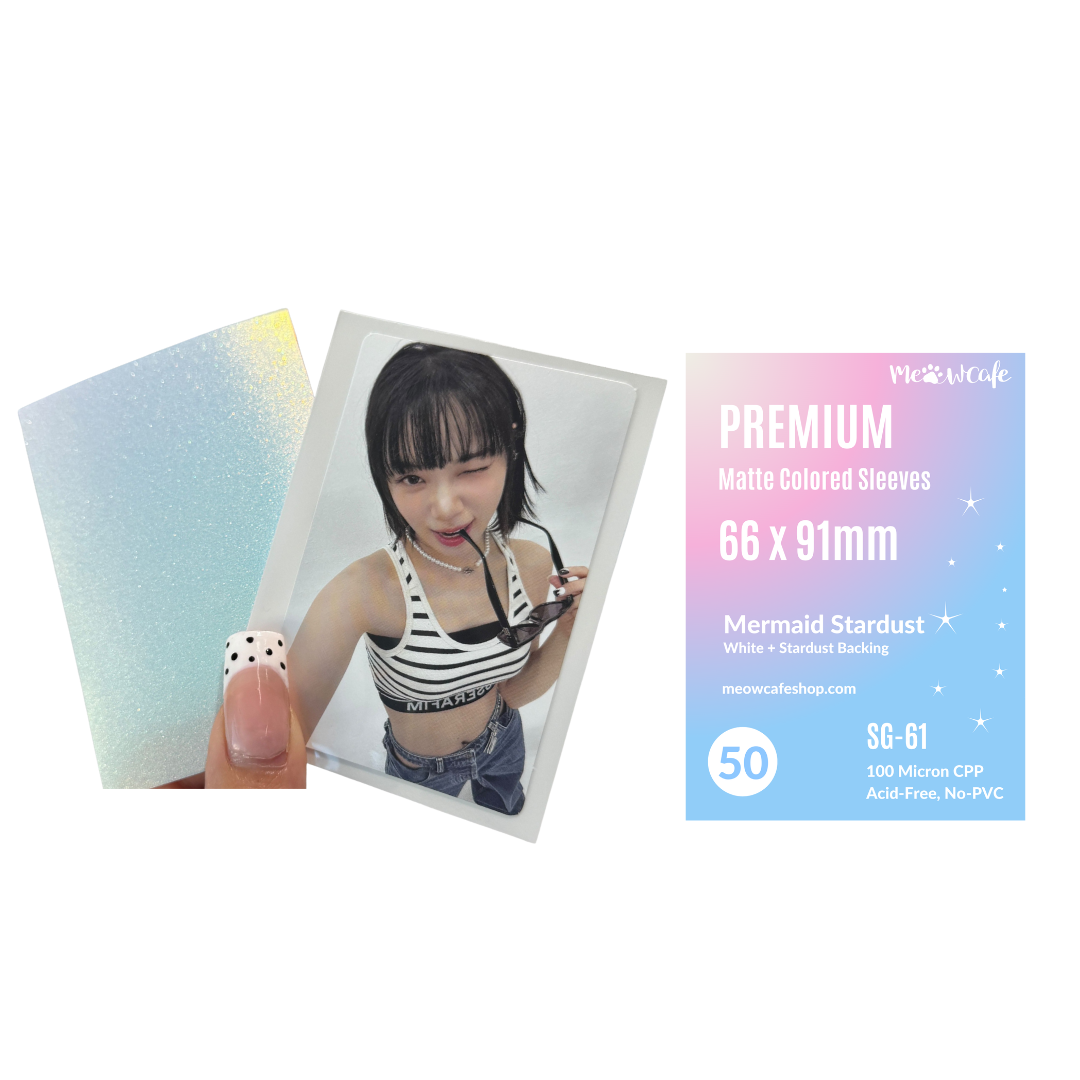 ![[Single Sided Stardust] Meowcafe [66x91 mm] Premium Stardust Sleeves - Gradient Mermaid Stardust Fit Monsta X Photocard (White + Stardust Backing)](http://meowcafeshop.com/cdn/shop/files/2_7c88003e-9ff4-4142-9469-a285c6570ee9_medium.png?v=1752598054)