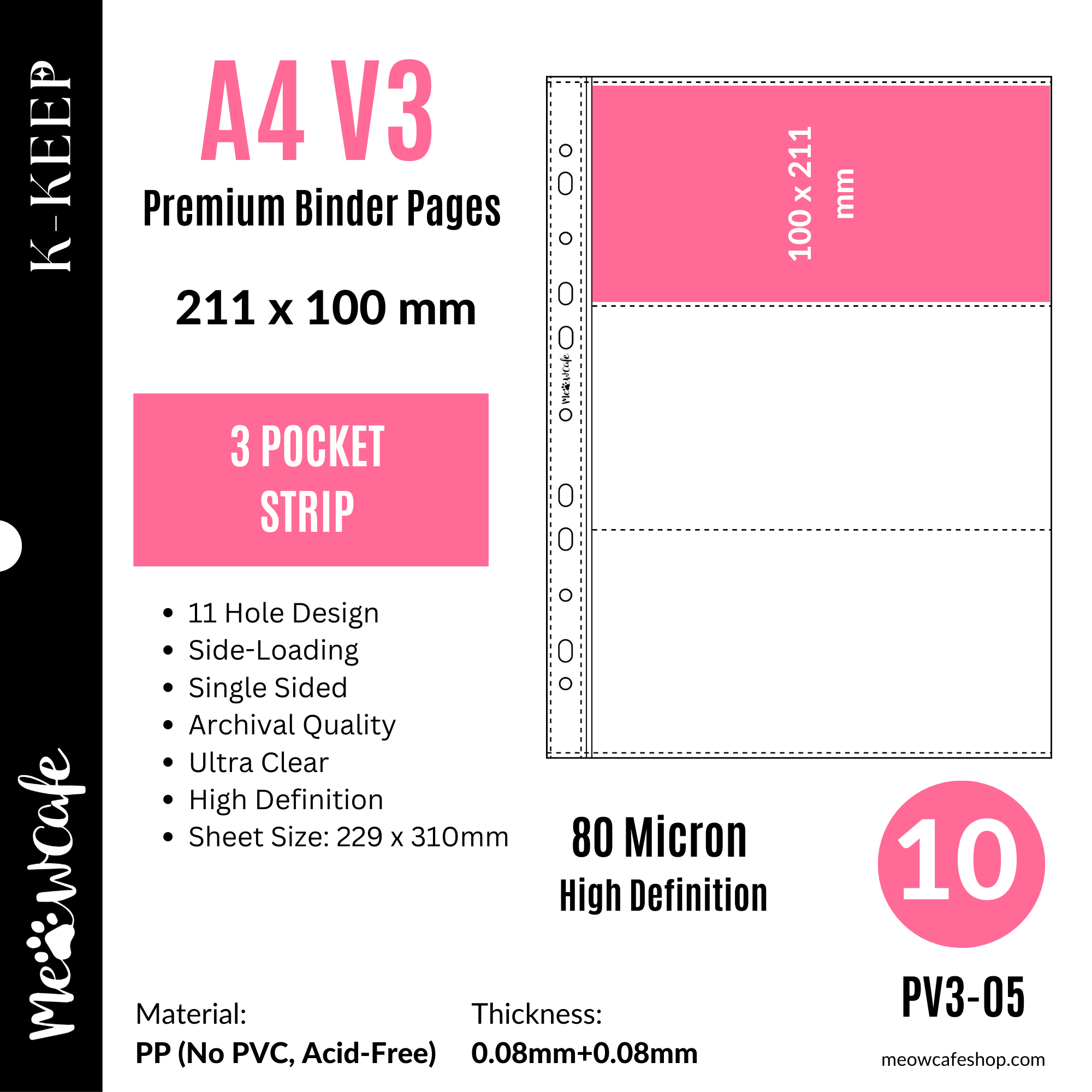 ![[40% OFF, Final Stock, No Restock] K-KEEP [A4 V3] - 3 Pocket (Strip)- 11 Holes Premium Binder Pages, 80 Micron Thick, High Definition (Pack of 10) - (PV3-05)](http://meowcafeshop.com/cdn/shop/files/IMG_7152_medium.jpg?v=1689887458)