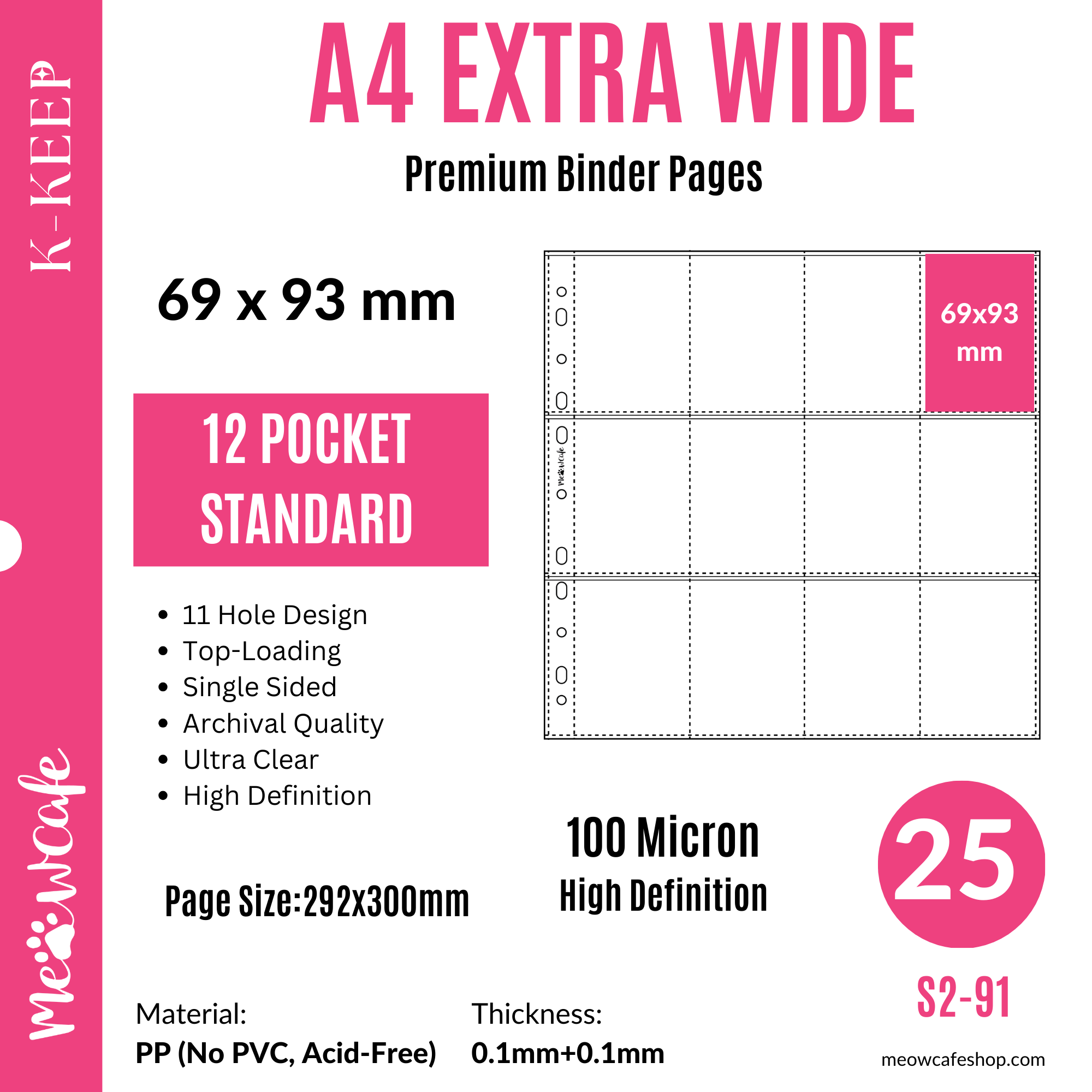 ![K-KEEP [A4 Extra-Wide] - 12 Pocket (69x93mm) 66x91 Double Sleeve Perfect Fit- 11 Holes Premium Binder Pages, 100 Micron Thick, High Definition (Pack of 25) - (S2-91)](http://meowcafeshop.com/cdn/shop/files/4_96826e26-3210-46cf-9692-30657bf0f301_medium.png?v=1739990089)