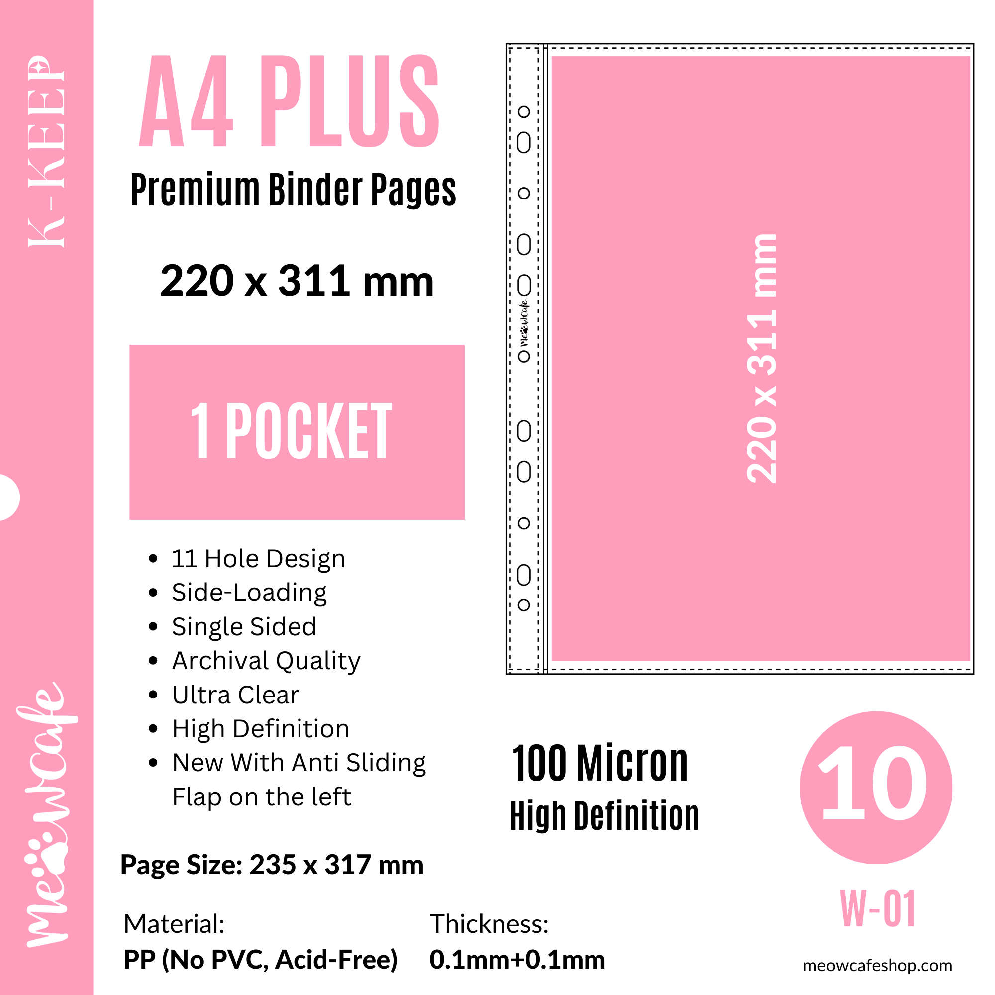 ![K-KEEP [A4 PLUS] - 1 Pocket - 11 Holes Premium Binder Pages, 100 Micron Thick, High Definition (Pack of 10) - (W-01)](http://meowcafeshop.com/cdn/shop/files/13_9b778a9d-57f5-4027-a564-b0946740e31f_medium.png?v=1750111081)