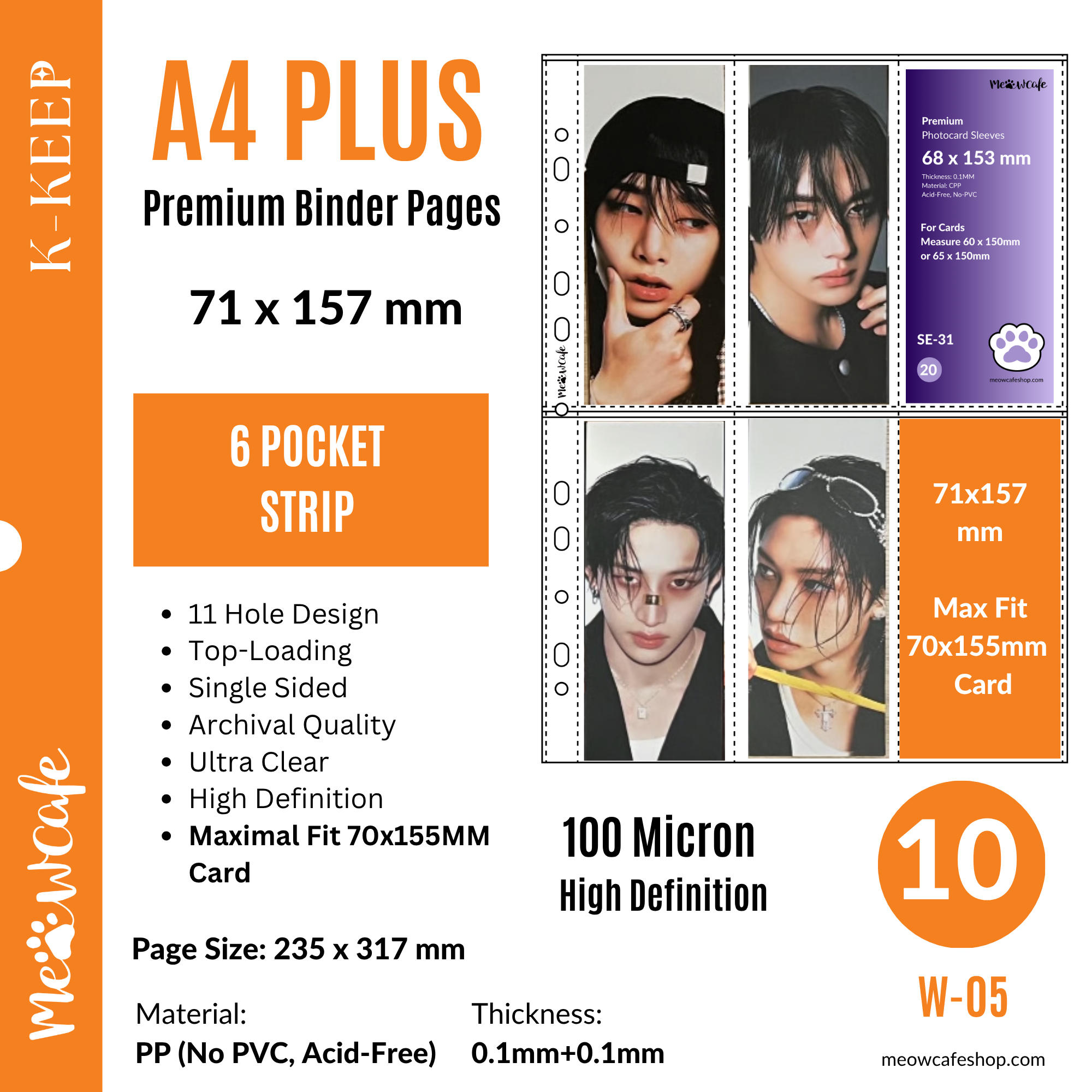 ![[For Kpop Collector] K-KEEP [A4 PLUS] - 6 Pocket (Vertical Strip) - 11 Holes Premium Binder Pages, 100 Micron Thick, High Definition, Fits 60x150 Stray Kids Player Ticket and Bookmark(Pack of 10) - (W-05)](http://meowcafeshop.com/cdn/shop/files/W-05_0403_medium.png?v=1775240407)
