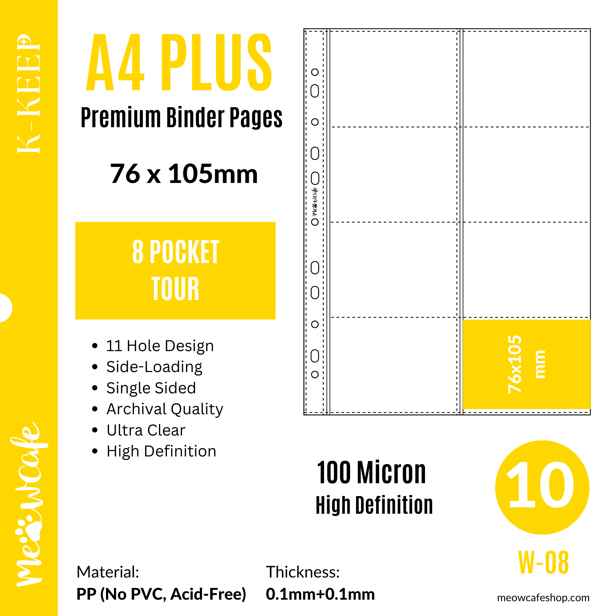 ![K-KEEP [A4 PLUS] -  8 Pocket Tour - 11 Holes Premium Binder Pages, 100 Micron Thick, High Definition (Pack of 10) - (W-08)](http://meowcafeshop.com/cdn/shop/files/W-08_medium.png?v=1689626291)