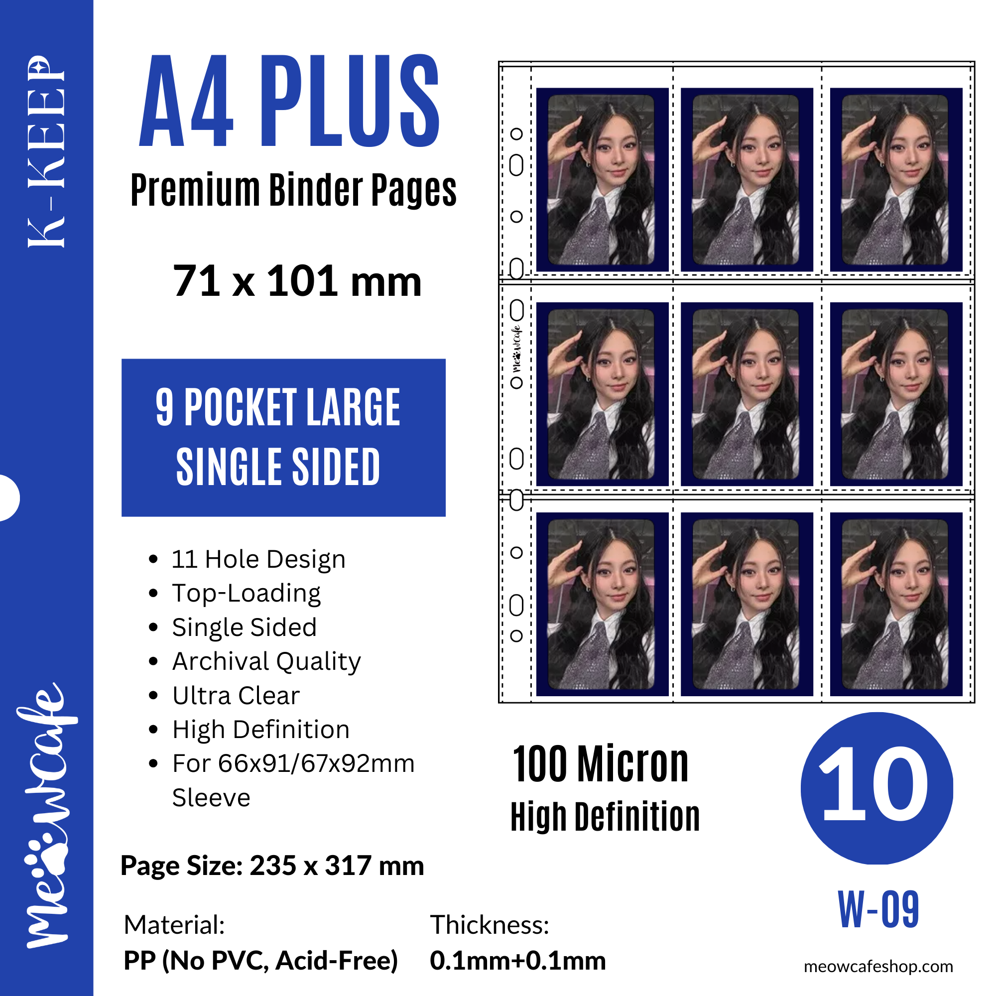 ![K-KEEP [A4 PLUS] - 9 Pocket Large (71x101mm) - 11 Holes Premium Binder Pages, 100 Micron Thick, High Definition (Pack of 10) - (W-09) Fits Monsta X, Pokemon, 66x91mm Dragon Shield Sleeve](http://meowcafeshop.com/cdn/shop/files/W-09_68c17e7f-0b1a-40cd-ad2f-6691f7b2434e_medium.png?v=1739484750)