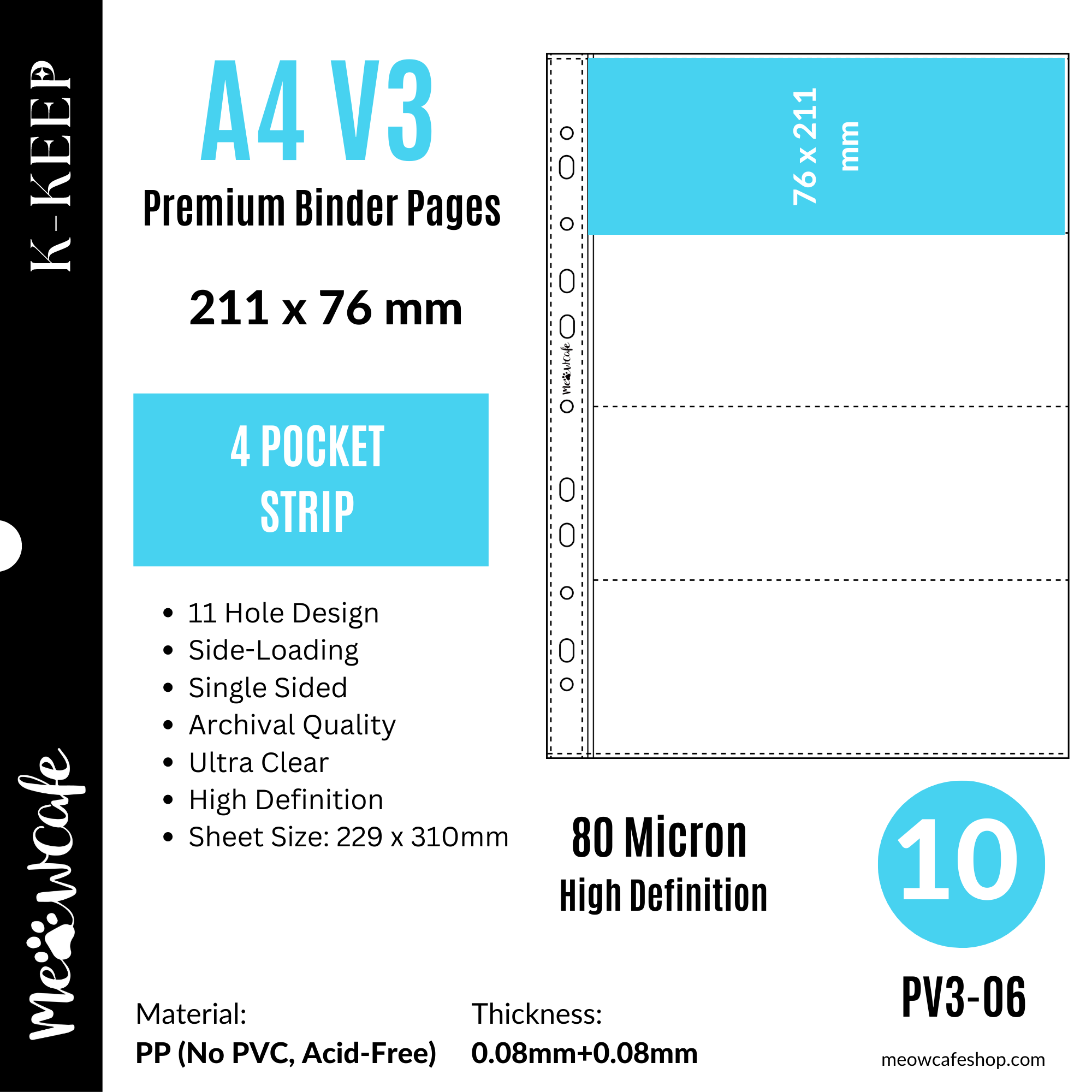 ![[40% OFF, Final Stock, No Restock] K-KEEP [A4 V3] - 4 Pocket (Strip)- 11 Holes Premium Binder Pages, 80 Micron Thick, High Definition (Pack of 10) - (PV3-06)](http://meowcafeshop.com/cdn/shop/files/PV3-06_medium.png?v=1686749117)