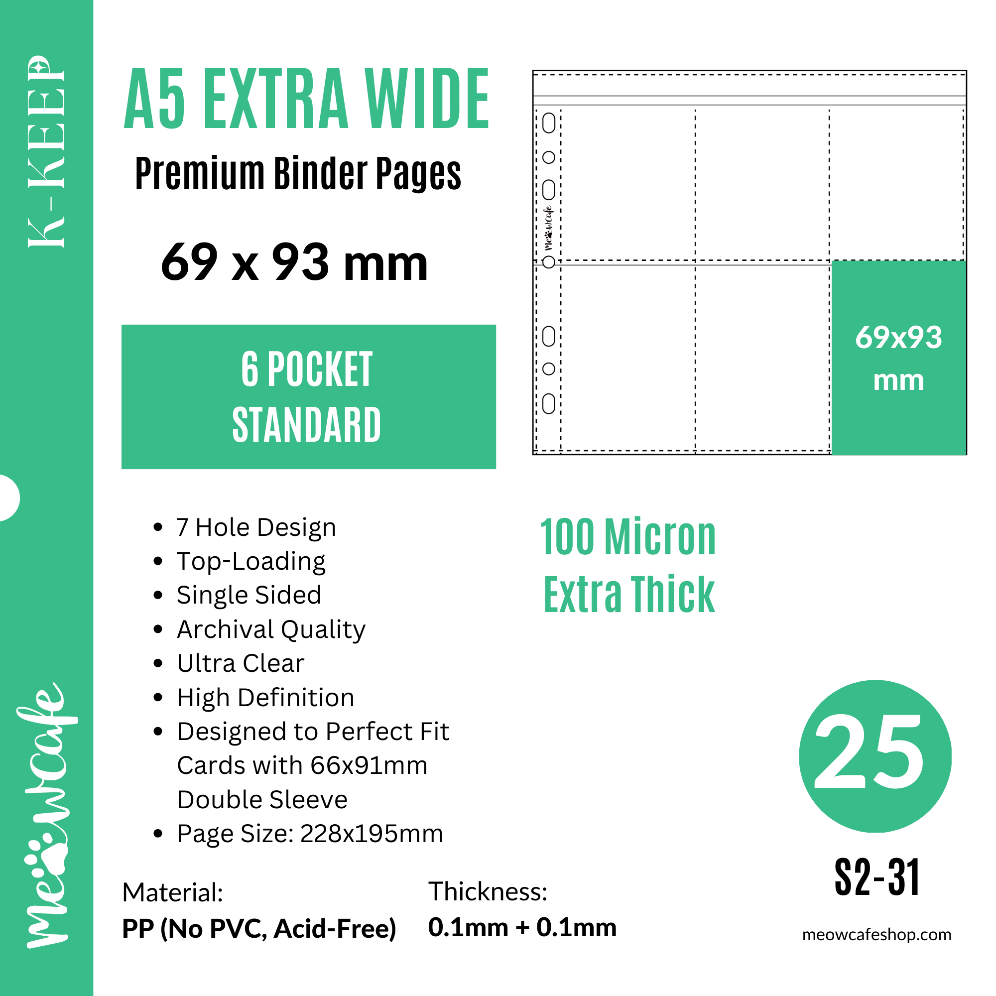 ![K-KEEP [A5 Extra-Wide] - 6 Pocket Standard 69x93mm - [For Perfect Fit 66x91mm Sleeve] Single Sided Premium Binder Pages with Anti Sliding Cap Design 7 Holes (25 Pages) - S2-31](http://meowcafeshop.com/cdn/shop/files/S2-31_cdf950b9-9802-4e31-9829-92b83a410a80_medium.png?v=1706997290)