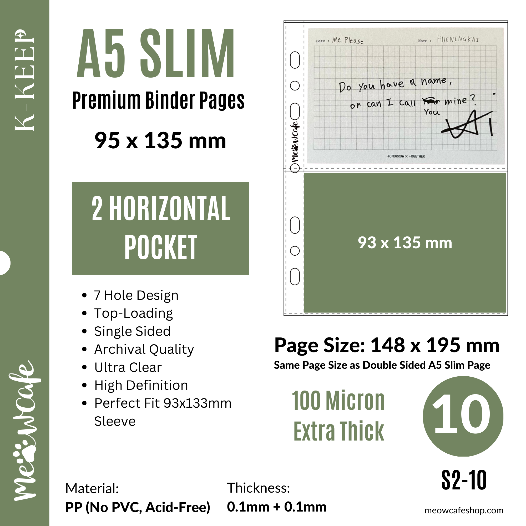 ![K-KEEP [A5 Slim] Custom Inclusion Page - [2 Pocket (95x135 mm)] Perfect Fit 93x133mm Sleeve - Single-Sided 7 Holes Premium Binder Pages, 100 Micron Thick, High Definition (Pack of 10) S2-10](http://meowcafeshop.com/cdn/shop/files/03CA9163-76CB-42F7-9A54-71FDBE8D7957_medium.jpg?v=1755208340)