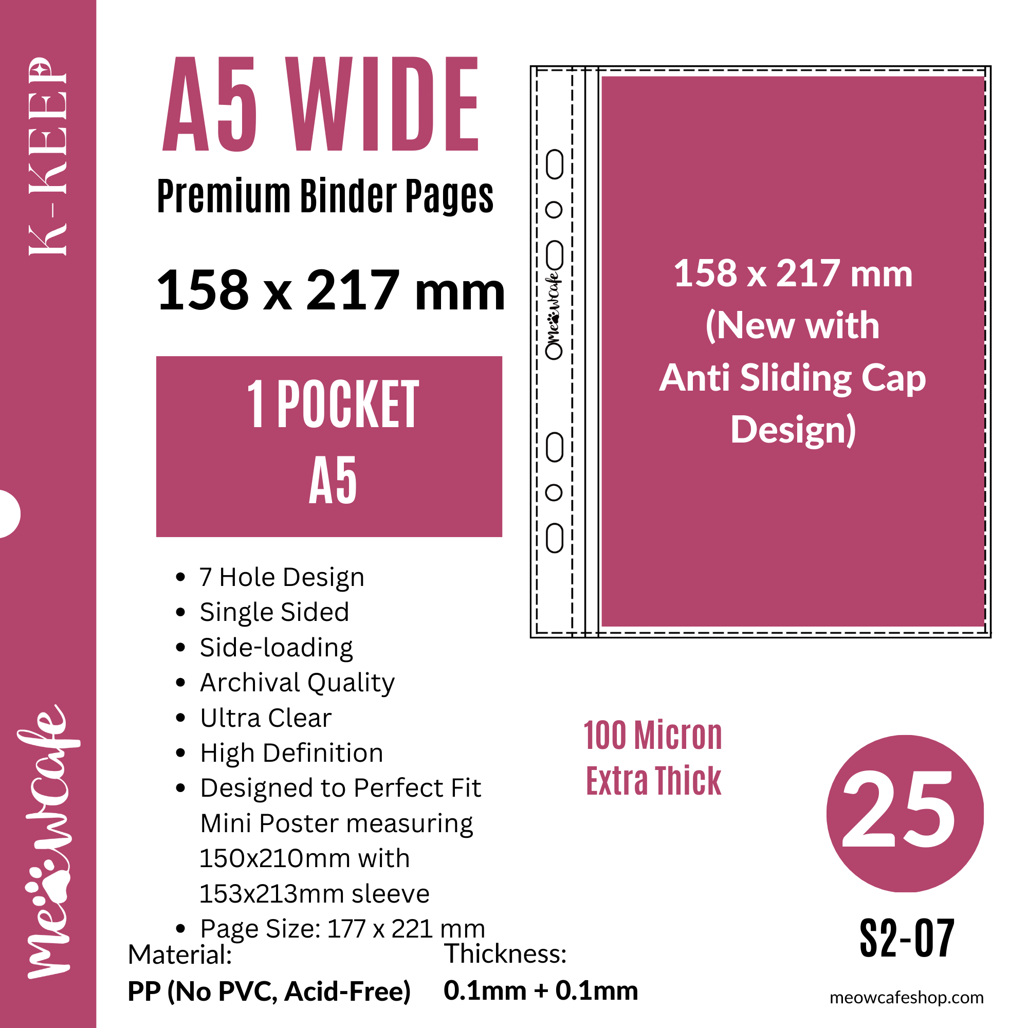 ![K-KEEP [A5 Wide] - 1 Pocket Mini Poster (158x217MM), 7 Holes Premium Binder Pages, 100 Micron Thick, High Definition (Pack of 25) S2-07 (New with Anti Sliding Flap)](http://meowcafeshop.com/cdn/shop/files/S2-07-25_medium.png?v=1711771278)