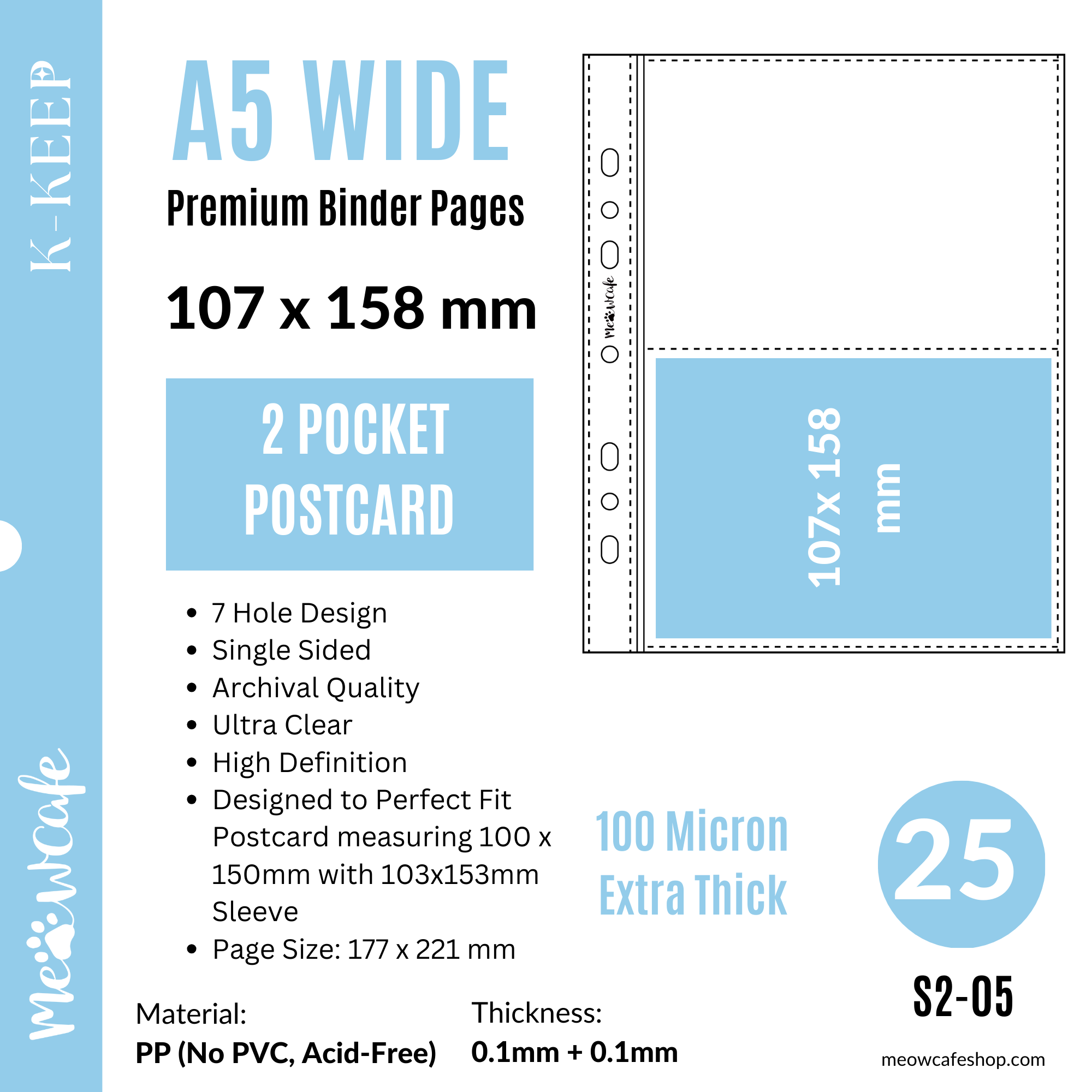 ![K-KEEP [A5 Wide] - 2 Pocket Postcard, 7 Holes Premium Binder Pages, 100 Micron Thick, High Definition (Pack of 25) - S2-05](http://meowcafeshop.com/cdn/shop/files/S2-05_1512615b-10a1-44cc-a928-3a68869cacce_medium.png?v=1718242176)