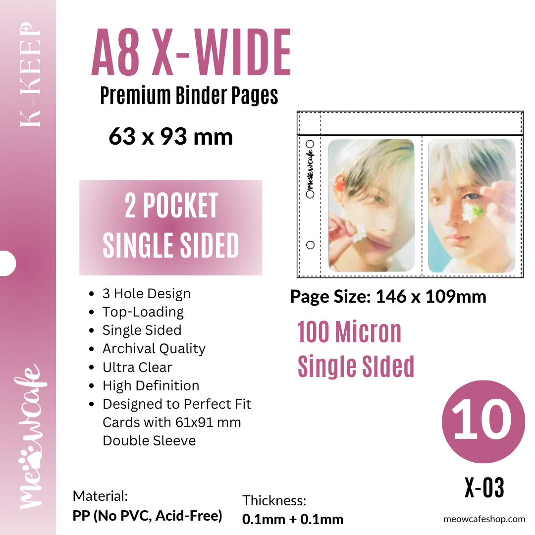 ![K-KEEP [A8 X-Wide] 2 Pocket - 63x93mm Single-Sided 3 Holes Premium Binder Pages, 100 Micron Thick, High Definition Glossy (Pack of 10)](http://meowcafeshop.com/cdn/shop/files/X-03_bbc6688c-ffd7-4420-9a3f-99eec28e9afd_medium.png?v=1739486341)