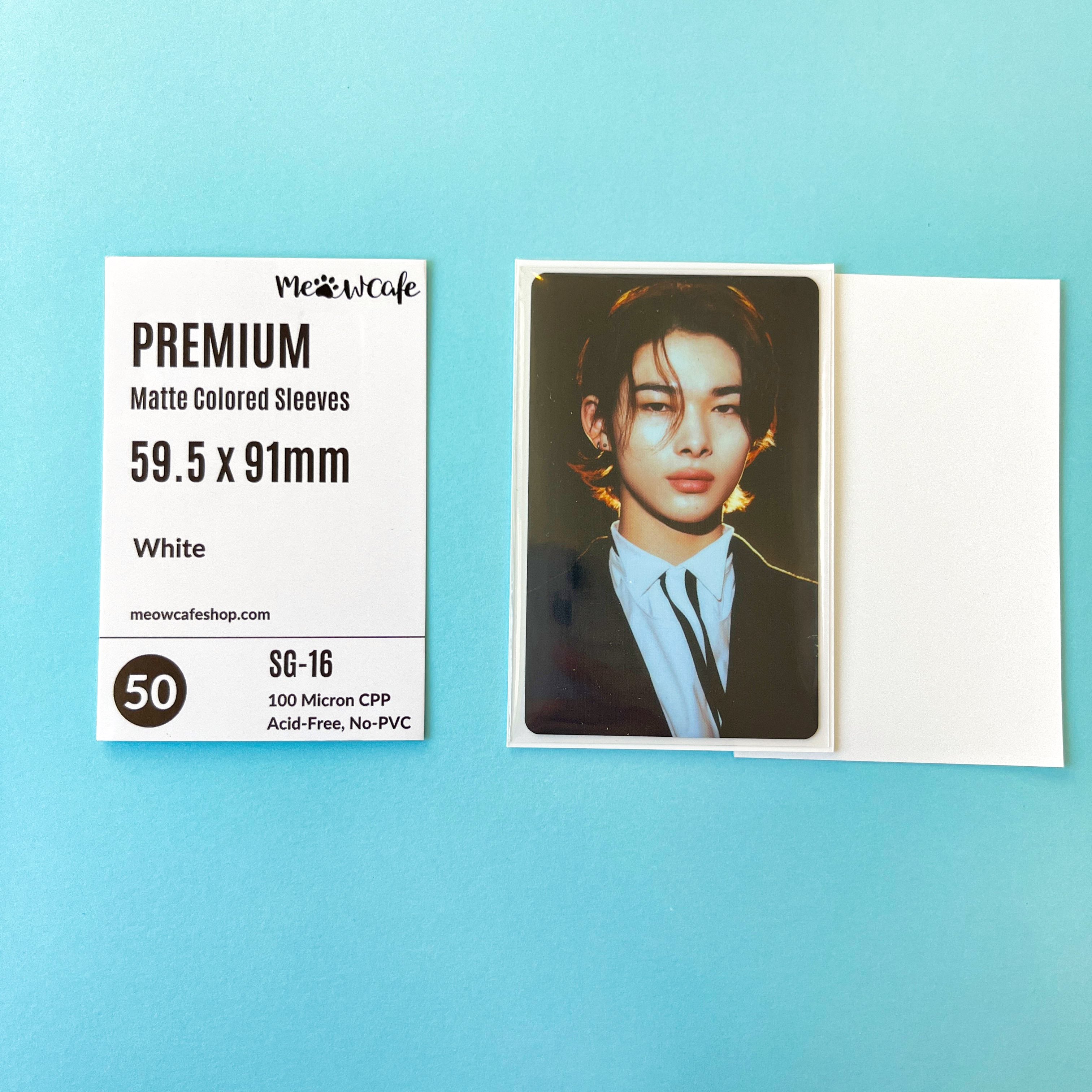 ![Meowcafe [59.5x91mm] Premium Colored Matte Sleeves - White (SG-16)](http://meowcafeshop.com/cdn/shop/files/IMG_0604_medium.jpg?v=1698193809)