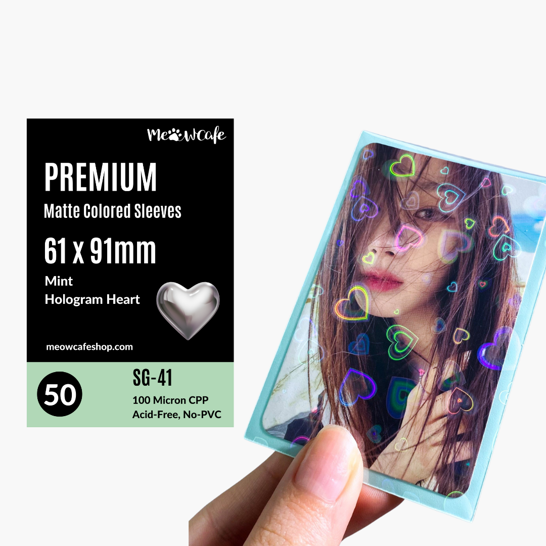 ![Meowcafe [61x91mm] Premium Colored Hologram Matte Sleeves - Hologram Heart Pastel Green (SG-41)](http://meowcafeshop.com/cdn/shop/files/16_34e630da-63c6-4e47-8c27-b0534870fd70_medium.png?v=1700695074)