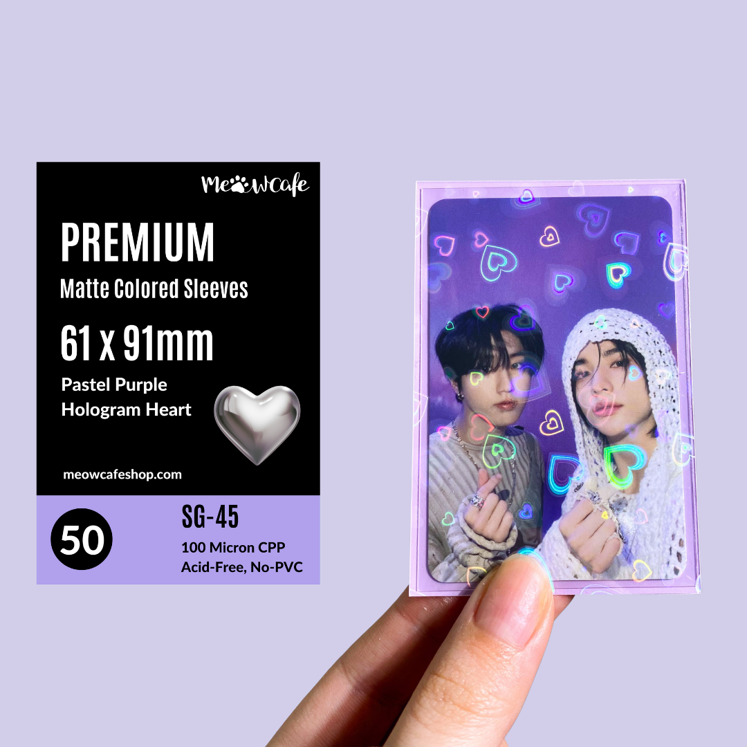 ![[61x91mm] Premium Colored Hologram Matte Sleeves - Hologram Heart Pastel Purple (SG-45)](http://meowcafeshop.com/cdn/shop/files/18_b30e681c-fef2-4989-84a1-44e5cbf572d8_medium.png?v=1700695120)