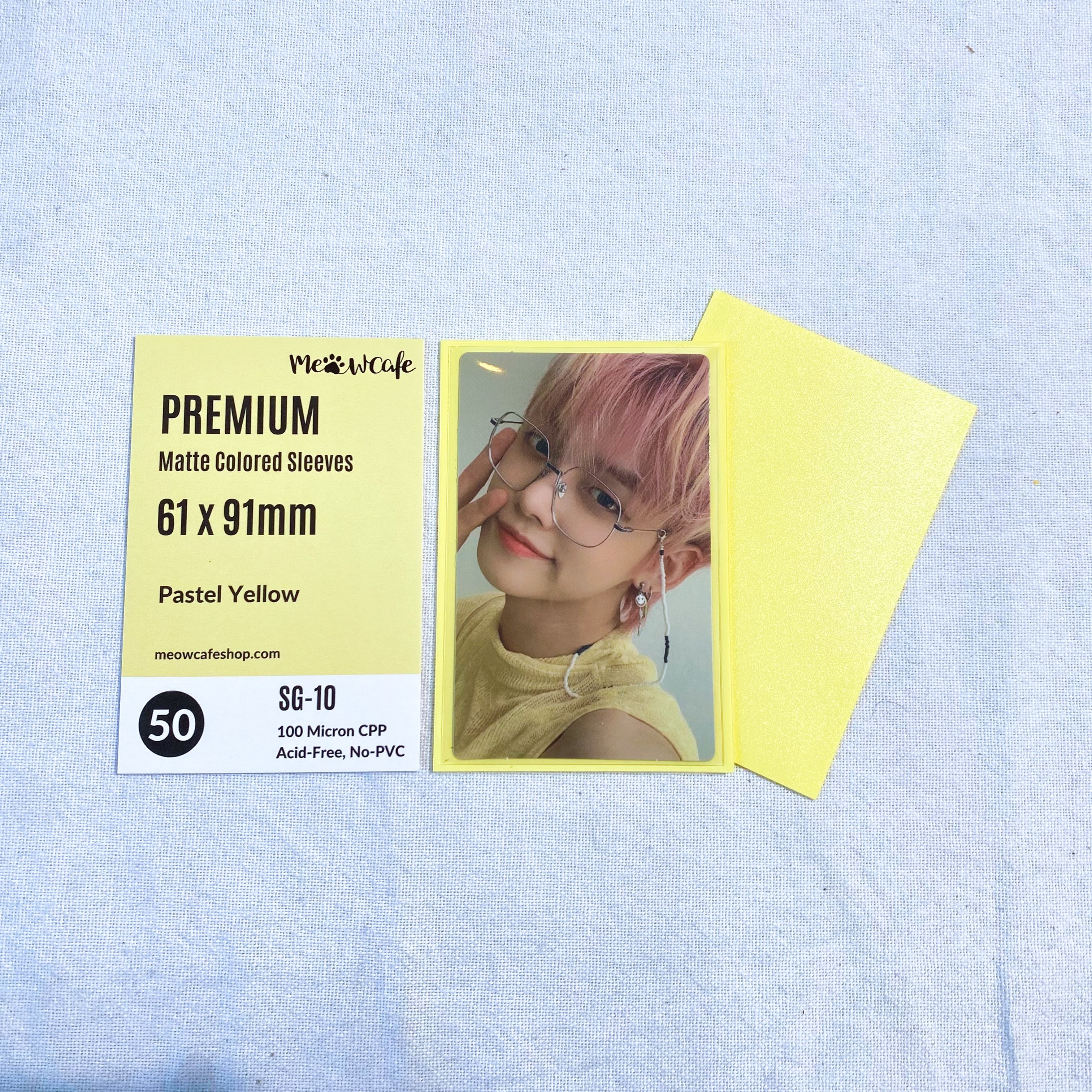 ![Meowcafe [61x91mm] Premium Colored Matte Sleeves - Pastel Yellow (SG-10)](http://meowcafeshop.com/cdn/shop/files/IMG_2237_medium.jpg?v=1698185249)
