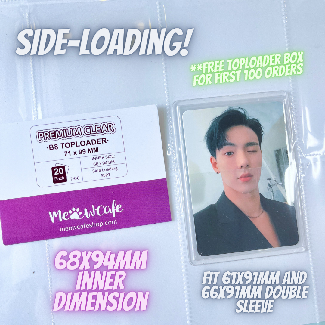 ![Meowcafe [71x99mm Side-Loading] - [Continuous Contour] Premium Clear Toploader - Fit Double Sleeved Photocard](http://meowcafeshop.com/cdn/shop/files/6_de59c51b-4e51-4b76-abbb-14609b8a0f40_medium.png?v=1743706902)