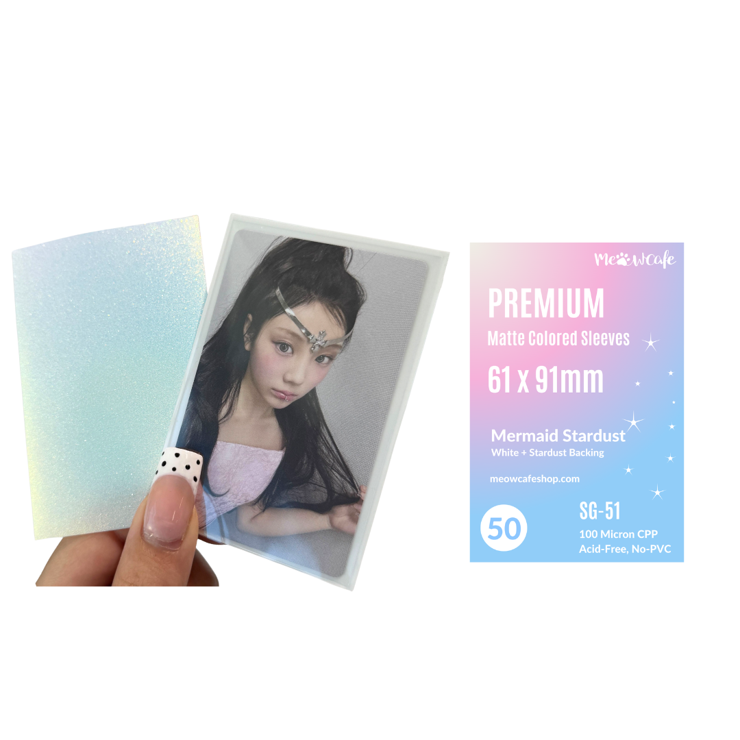 ![[Single Sided Stardust] Meowcafe [61 x 91 mm] Premium Stardust Sleeves - Gradient Mermaid Stardust (White Front + Mermaid Stardust Back)](http://meowcafeshop.com/cdn/shop/files/4_c1470f45-dd1b-4a0c-888a-55cdceb3591f_medium.png?v=1752598829)
