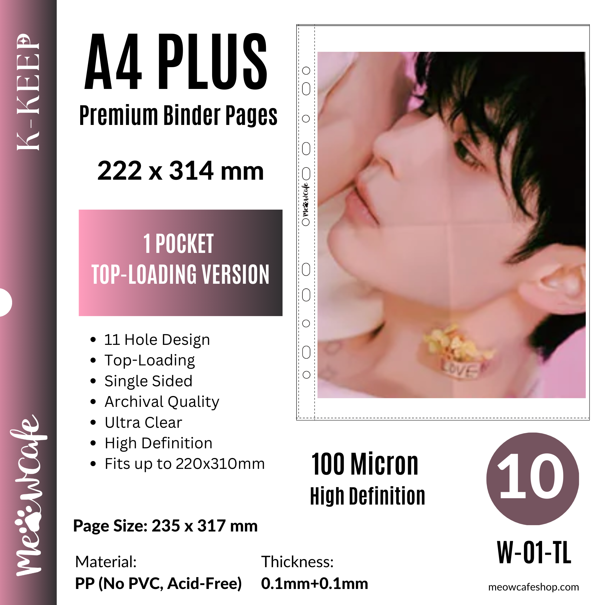 ![[Top-loading Version] K-KEEP [A4 PLUS] - 1 Pocket - 11 Holes Premium Binder Pages, 100 Micron Thick, High Definition (Pack of 10)](http://meowcafeshop.com/cdn/shop/files/W-01-TL_medium.png?v=1747846239)