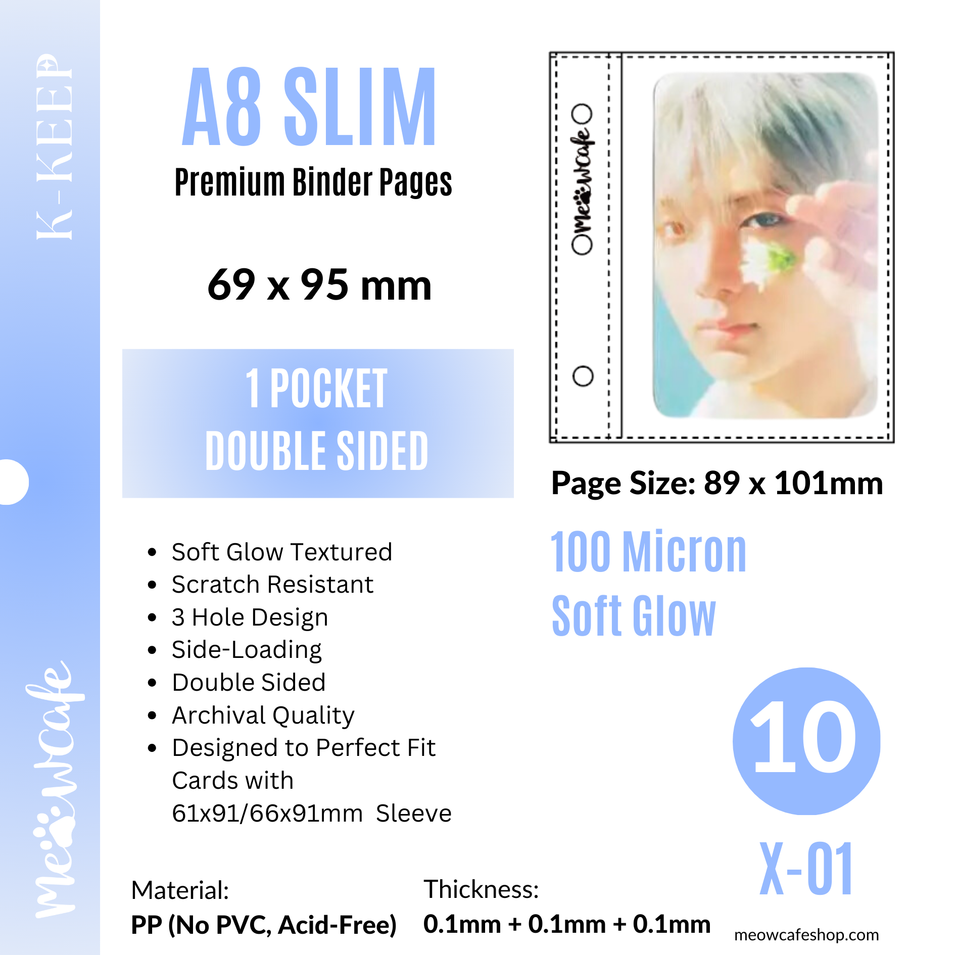 ![[Soft Glow Series] K-KEEP [A8 Slim] 1 Pocket - 69x95mm Double-Sided 3 Holes Premium Binder Pages, 100 Micron Thick (Pack of 10)](http://meowcafeshop.com/cdn/shop/files/1_643edb5e-6177-4625-af54-f19b01fd523f_medium.png?v=1735855323)